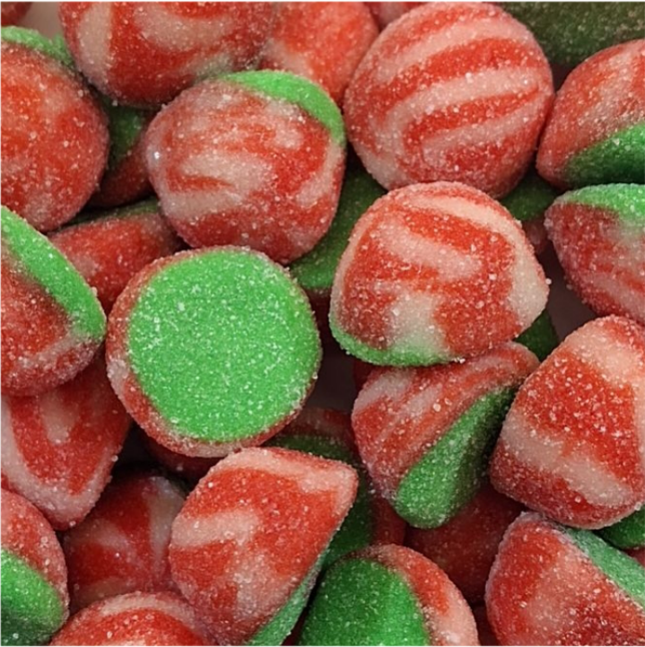 Składniki: syrop glukozowy, cukier, żelatyna spożywcza, koncentraty owocowe i warzywne, kwasy: kwas cytrynowy, kwas mlekowy, aromaty, barwniki: karmin, kurkumina, błękit brylantowy FCF, substancje glazurujące: wosk pszczeli biały i żółty, wosk carnauba.