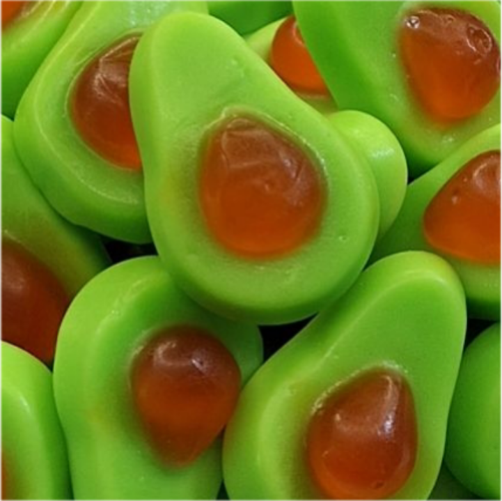 Składniki: syrop glukozowy, cukier, żelatyna spożywcza, koncentraty owocowe i warzywne, kwasy: kwas cytrynowy, kwas mlekowy, aromaty, barwniki: karmin, kurkumina, błękit brylantowy FCF, substancje glazurujące: wosk pszczeli biały i żółty, wosk carnauba.