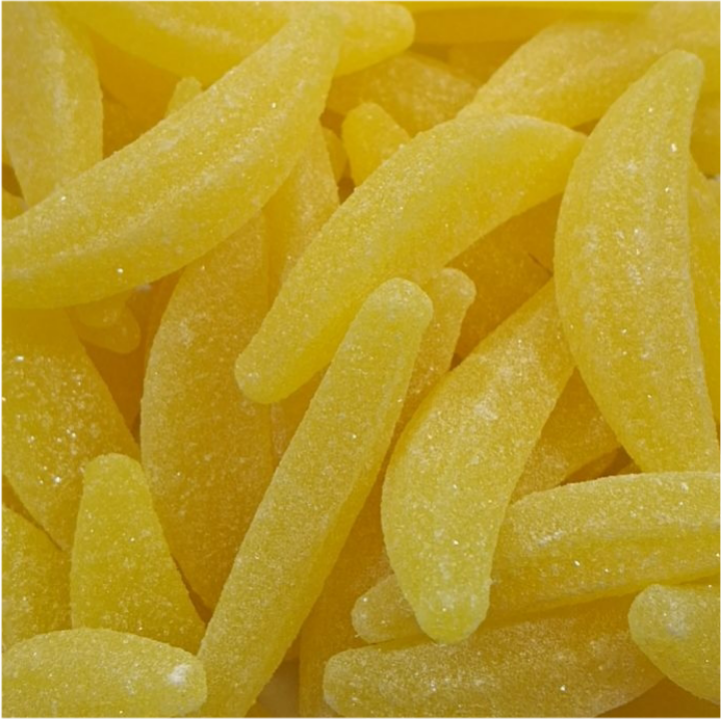 Składniki: syrop glukozowy, cukier, żelatyna spożywcza, koncentraty owocowe i warzywne, kwasy: kwas cytrynowy, kwas mlekowy, aromaty, barwniki: karmin, kurkumina, błękit brylantowy FCF, substancje glazurujące: wosk pszczeli biały i żółty, wosk carnauba.