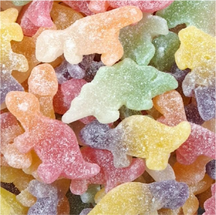 Składniki: syrop glukozowy, cukier, żelatyna spożywcza, koncentraty owocowe i warzywne, kwasy: kwas cytrynowy, kwas mlekowy, aromaty, barwniki: karmin, kurkumina, błękit brylantowy FCF, substancje glazurujące: wosk pszczeli biały i żółty, wosk carnauba.