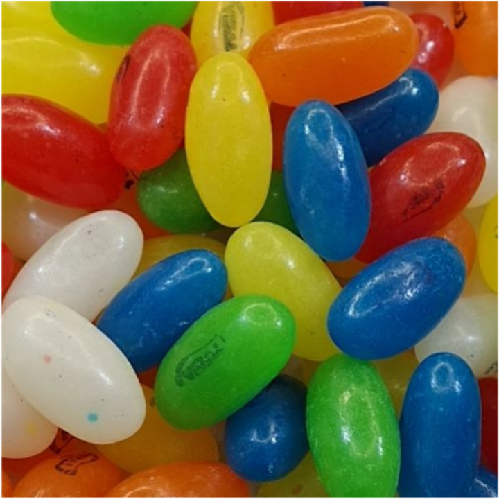 Składniki: syrop glukozowy, cukier, żelatyna spożywcza, koncentraty owocowe i warzywne, kwasy: kwas cytrynowy, kwas mlekowy, aromaty, barwniki: karmin, kurkumina, błękit brylantowy FCF, substancje glazurujące: wosk pszczeli biały i żółty, wosk carnauba.
