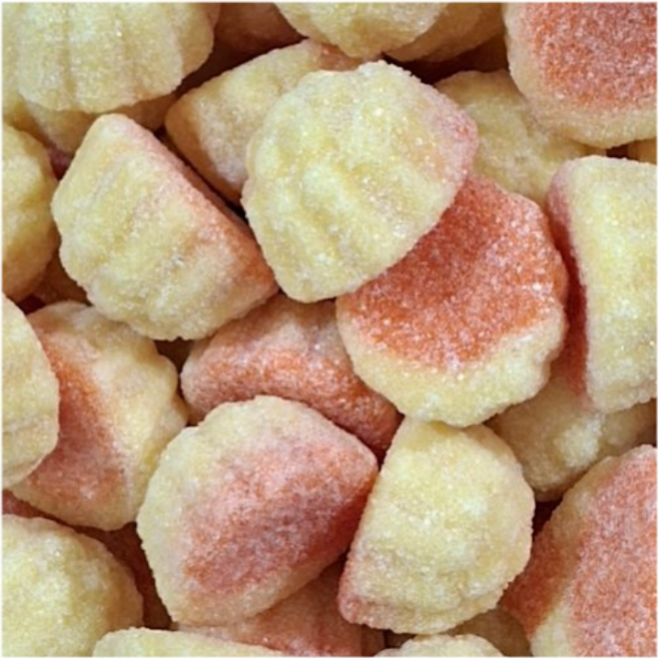 Składniki: syrop glukozowy, cukier, żelatyna spożywcza, koncentraty owocowe i warzywne, kwasy: kwas cytrynowy, kwas mlekowy, aromaty, barwniki: karmin, kurkumina, błękit brylantowy FCF, substancje glazurujące: wosk pszczeli biały i żółty, wosk carnauba.