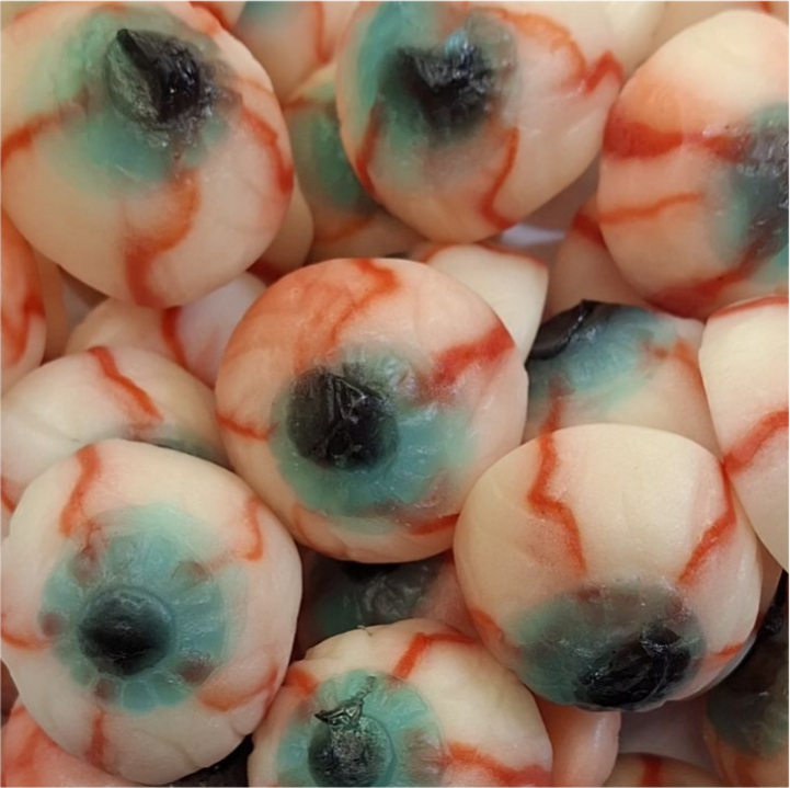 Składniki: syrop glukozowy, cukier, żelatyna spożywcza, koncentraty owocowe i warzywne, kwasy: kwas cytrynowy, kwas mlekowy, aromaty, barwniki: karmin, kurkumina, błękit brylantowy FCF, substancje glazurujące: wosk pszczeli biały i żółty, wosk carnauba.