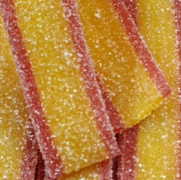 Składniki: syrop glukozowy, cukier, żelatyna spożywcza, koncentraty owocowe i warzywne, kwasy: kwas cytrynowy, kwas mlekowy, aromaty, barwniki: karmin, kurkumina, błękit brylantowy FCF, substancje glazurujące: wosk pszczeli biały i żółty, wosk carnauba.