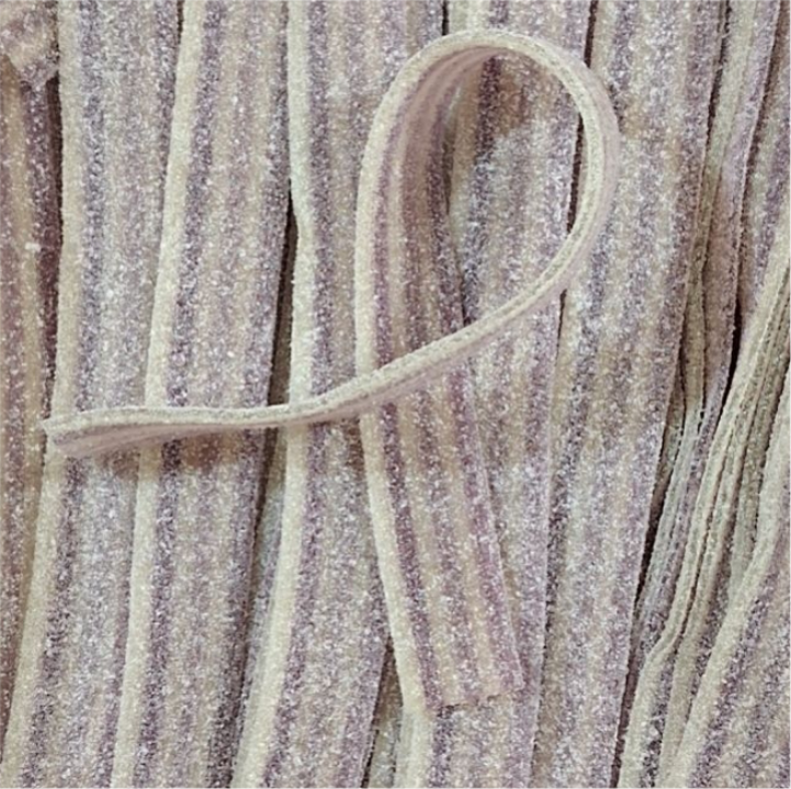 Składniki: syrop glukozowy, cukier, żelatyna spożywcza, koncentraty owocowe i warzywne, kwasy: kwas cytrynowy, kwas mlekowy, aromaty, barwniki: karmin, kurkumina, błękit brylantowy FCF, substancje glazurujące: wosk pszczeli biały i żółty, wosk carnauba.