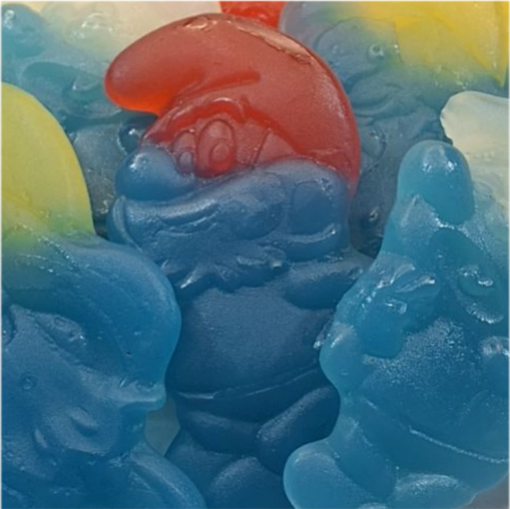 Składniki: syrop glukozowy, cukier, żelatyna spożywcza, koncentraty owocowe i warzywne, kwasy: kwas cytrynowy, kwas mlekowy, aromaty, barwniki: karmin, kurkumina, błękit brylantowy FCF, substancje glazurujące: wosk pszczeli biały i żółty, wosk carnauba.